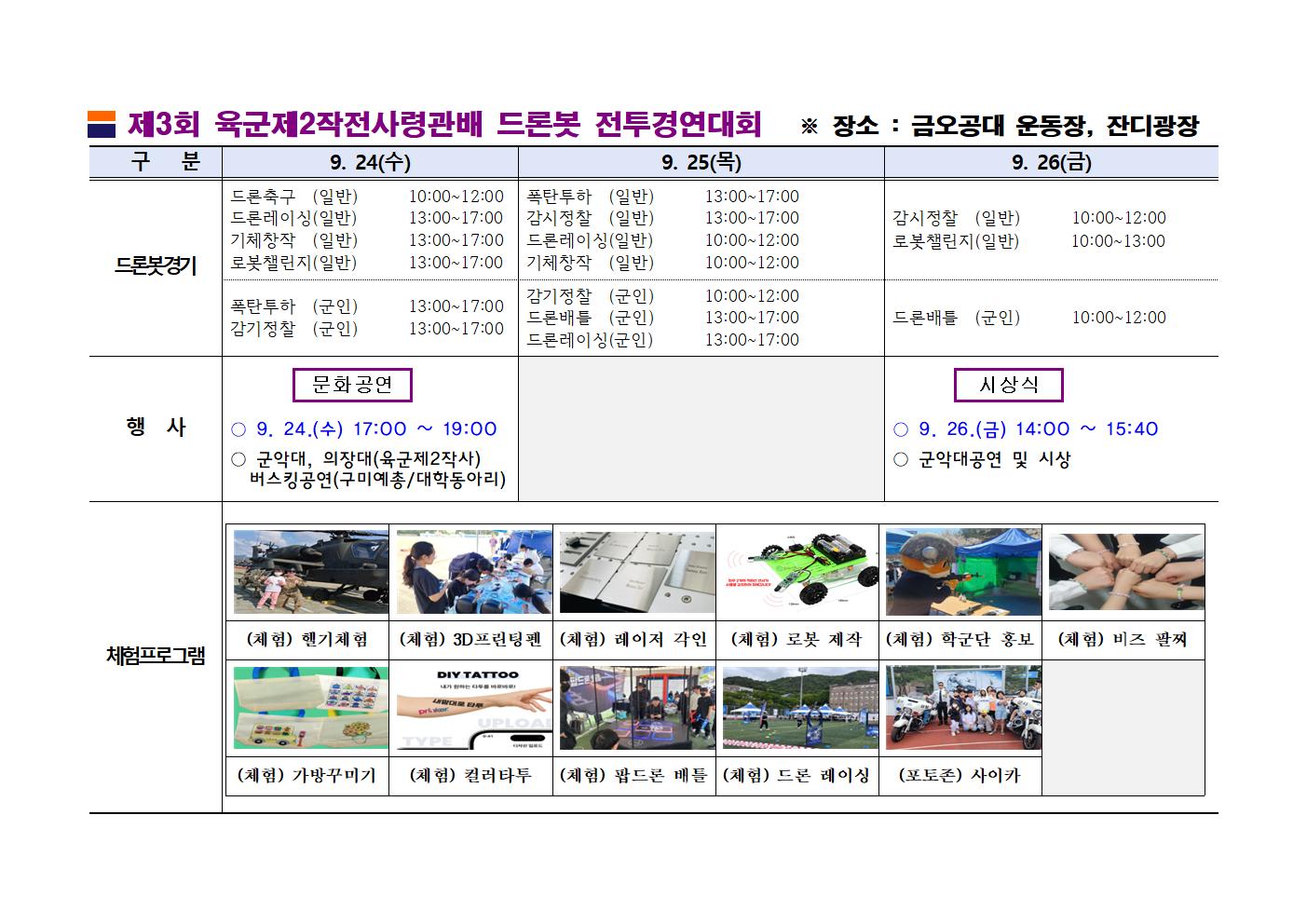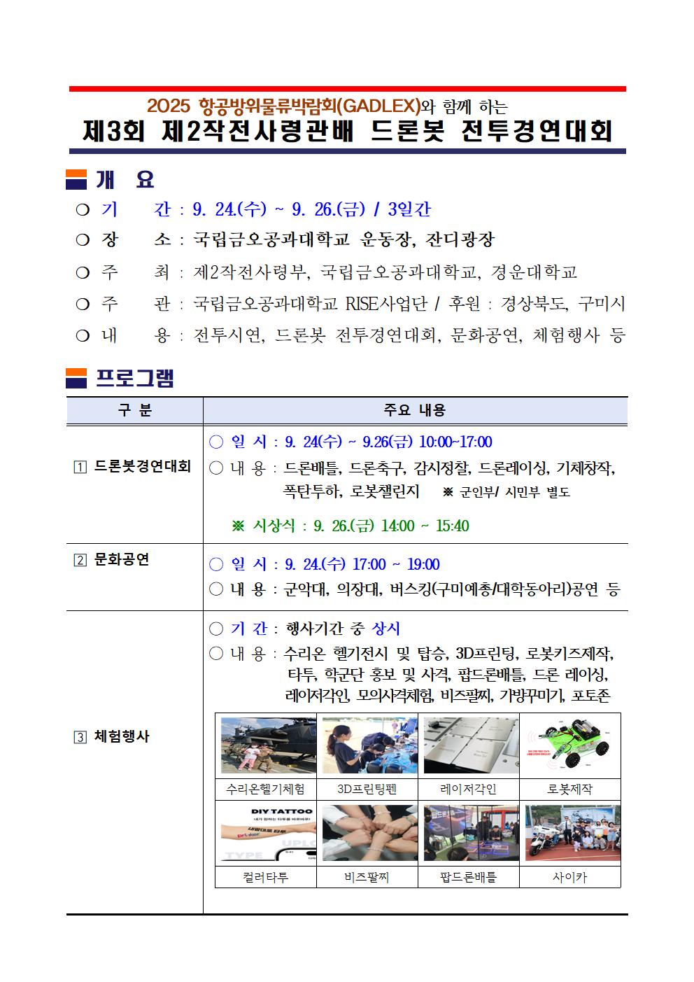 ¡à ÁÖ¿ä³»¿ë : ÀüÅõ½Ã¿¬, µå·Ðº¿ ÀüÅõ°æ¿¬´ëȸ, ¹®È°ø¿¬, üÇèÇà»ç µî